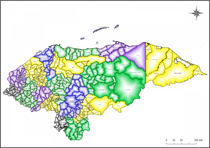 Map of Honduras with municipal divisions 24 x 36 & 36 x 48 inches // Mapa de Honduras con división municipal 24 x 36 & 36 x 48 pulgadas
